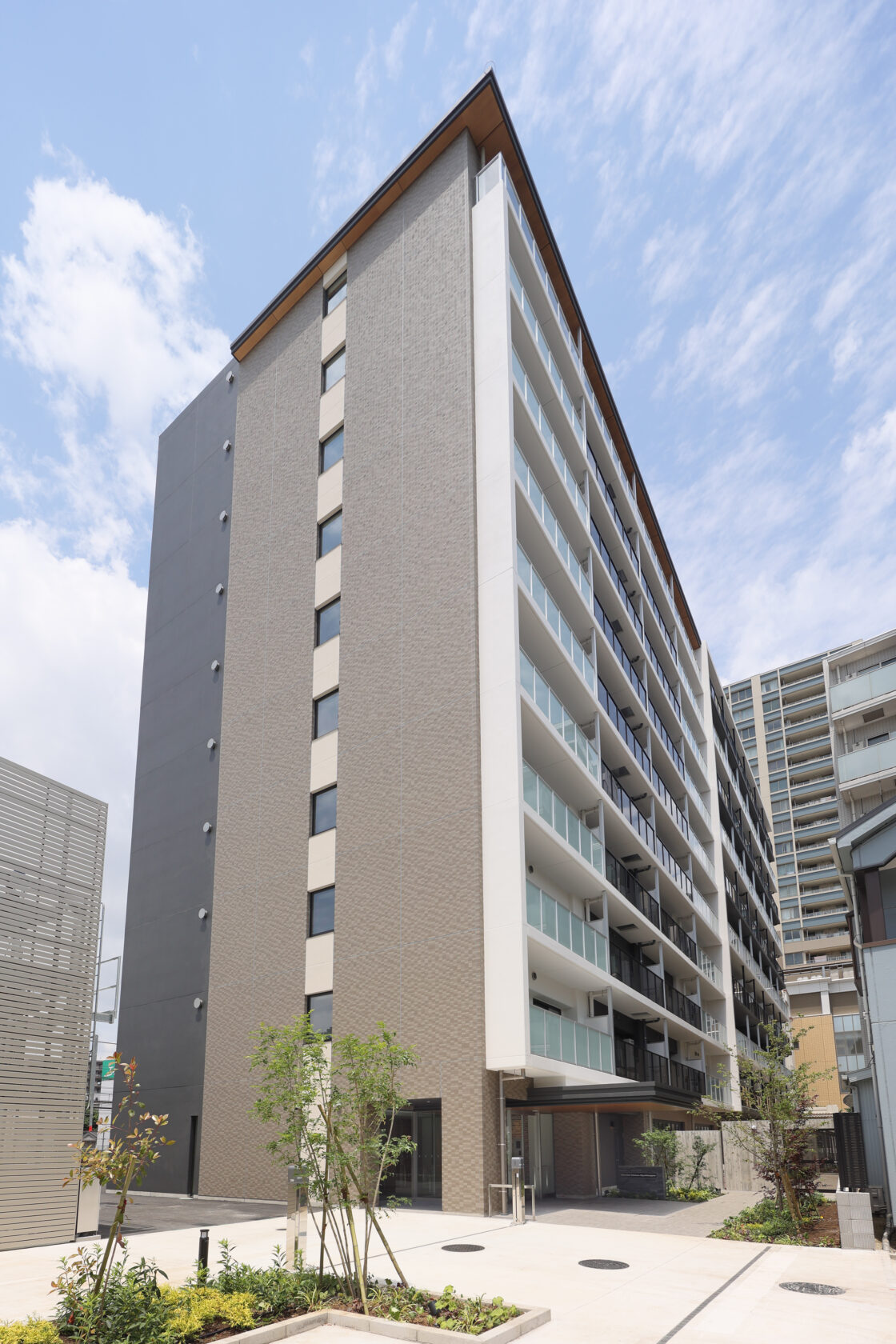 | 工事概要 | 敷地面積2035.16㎡ 建築面積1019.14㎡ 延床面積9013.57㎡ 構造:RC造10F 建築用途:共同住宅180戸 |
