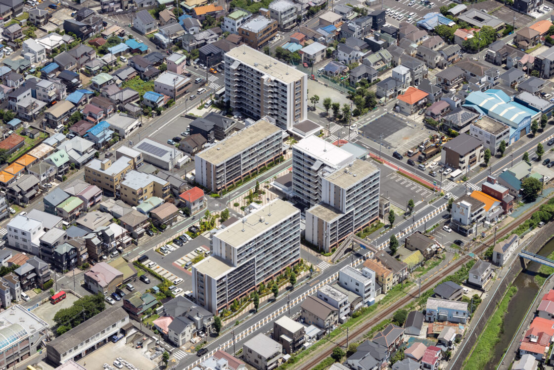 本公郷改良アパート 名称 本公郷改良アパート 所在地 神奈川県横須賀市 竣工年月 2025/6 工事概要 (建築)RC造、地上9階、延床面積:13,819.37㎡、建築面積:2,719.00㎡ 発注 神奈川県横須賀市